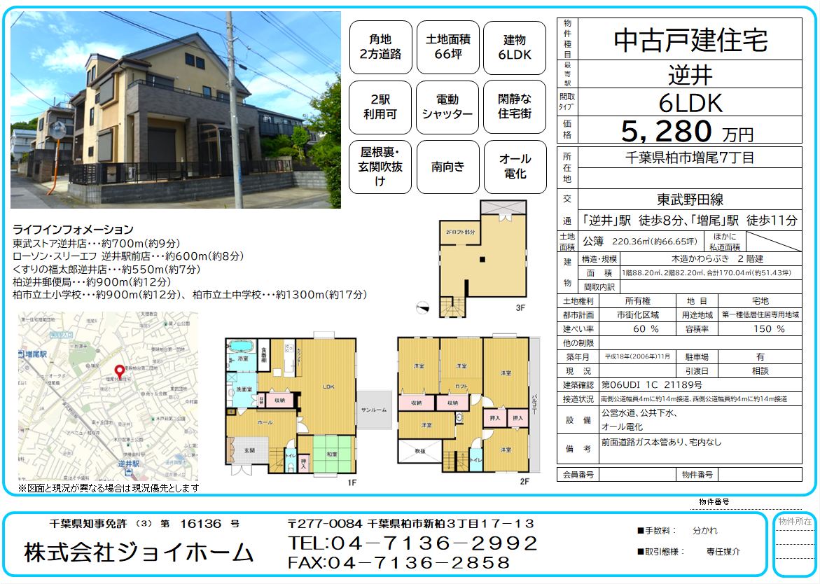柏市増尾7丁目土地66坪・建物6LDKの大型注文住宅です 価格:5,280万円 土地面積:220.36㎡ 建物面積:170.40㎡ 所在地:千葉県柏市増尾7丁目 |